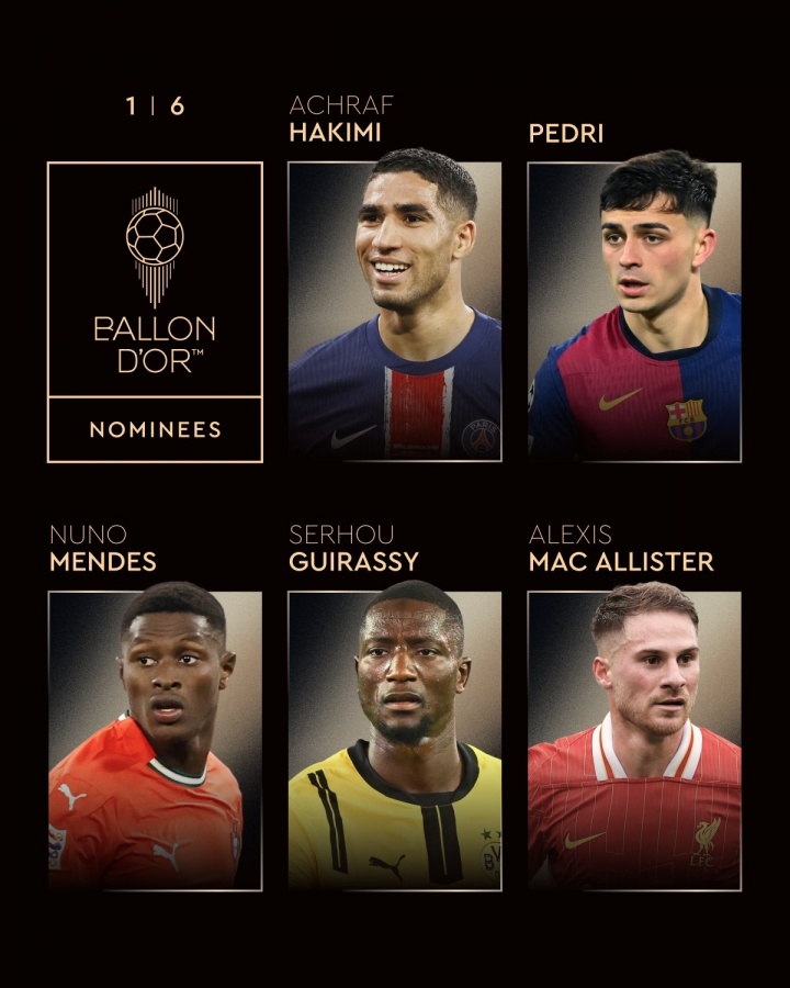 30名金球奖的候选人:Dembele在巴黎领导9名球员 Yamal Rafinia Mbappe被列出